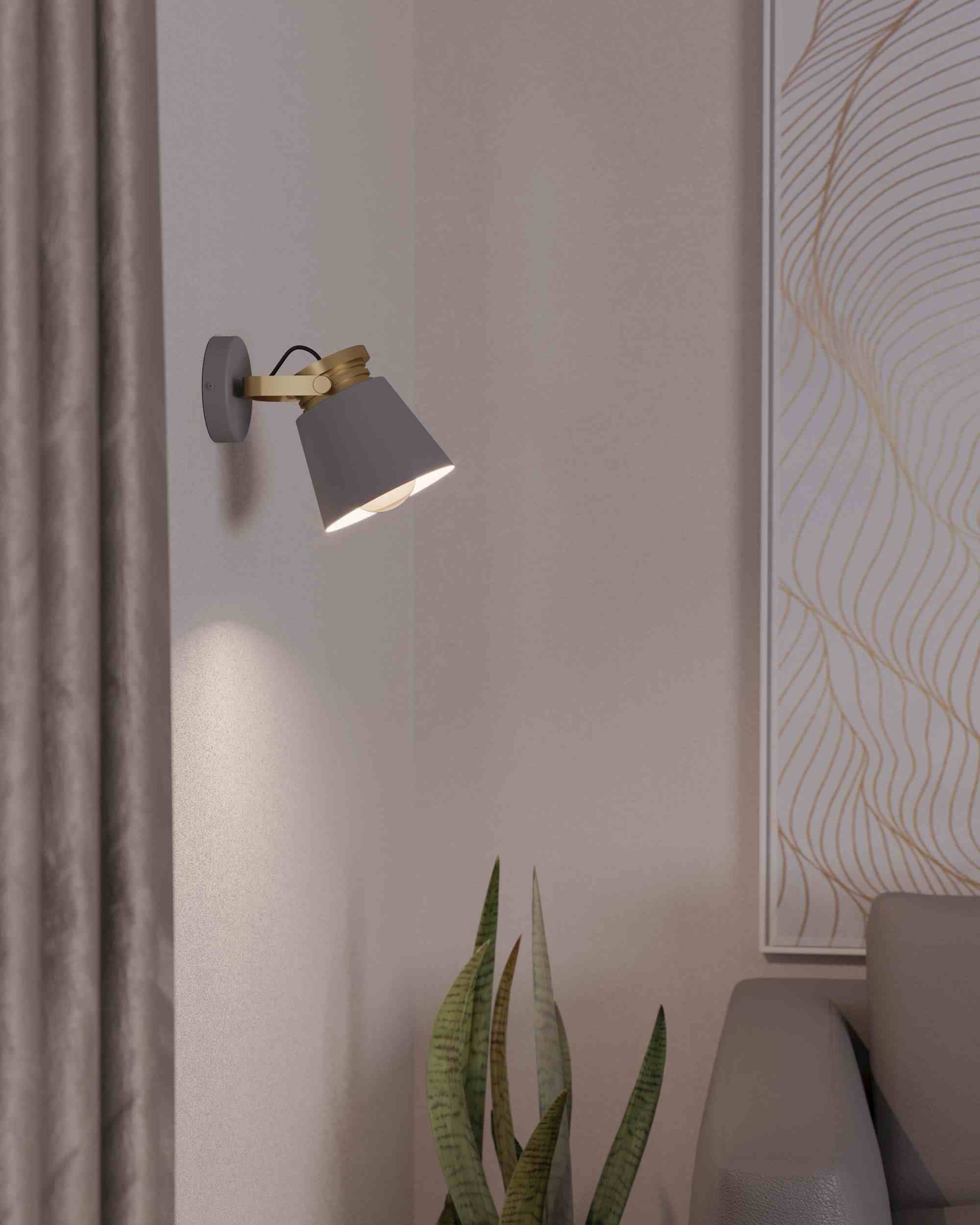 ZIDNA/REFLEKTOR/1, E27, ČELIK/SIVO/ZLATNA TWICKEN
